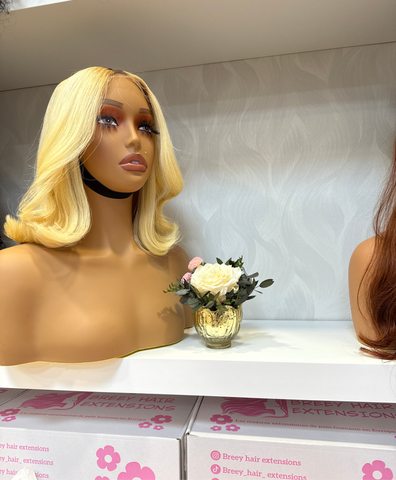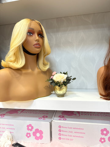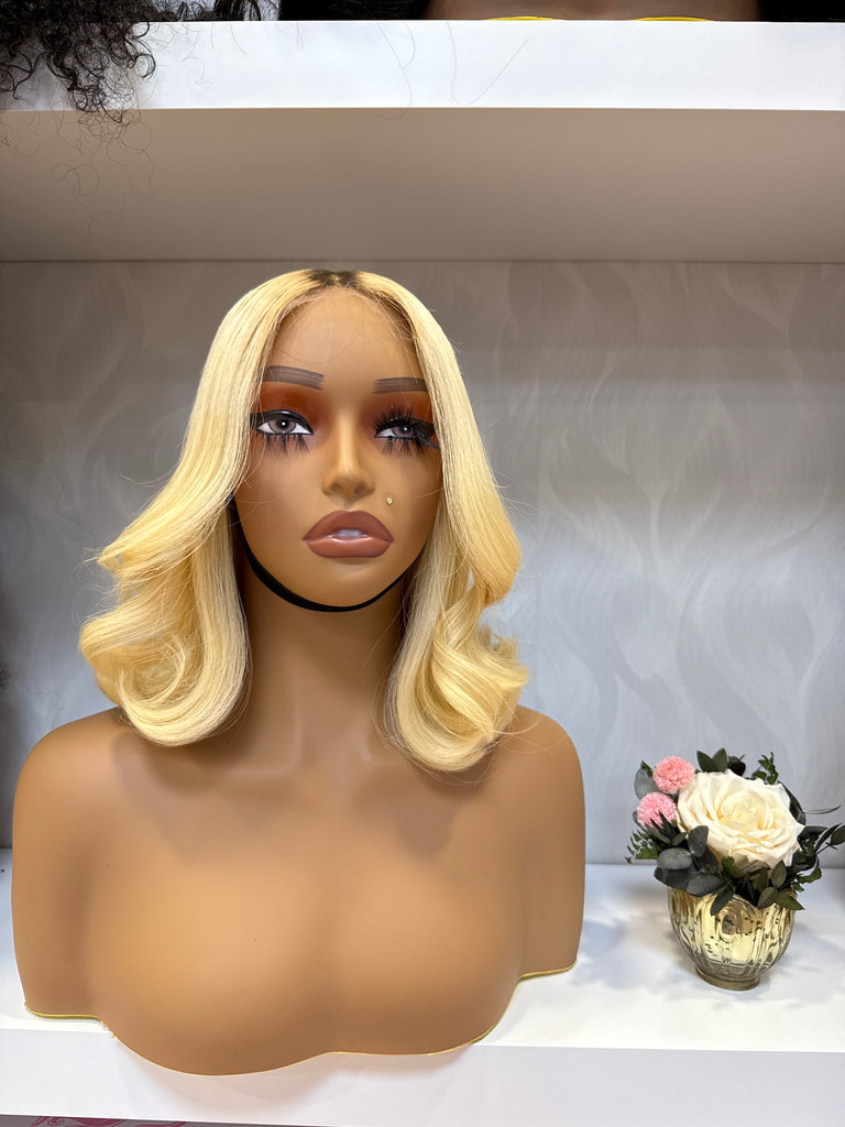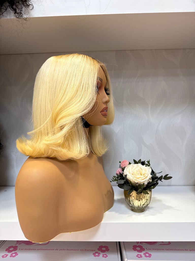 Peluca con encaje frontal full HD invisible o transparente , natural humana , 10 pulgadas 180 densidad , rubio platino , falso crecimiento .